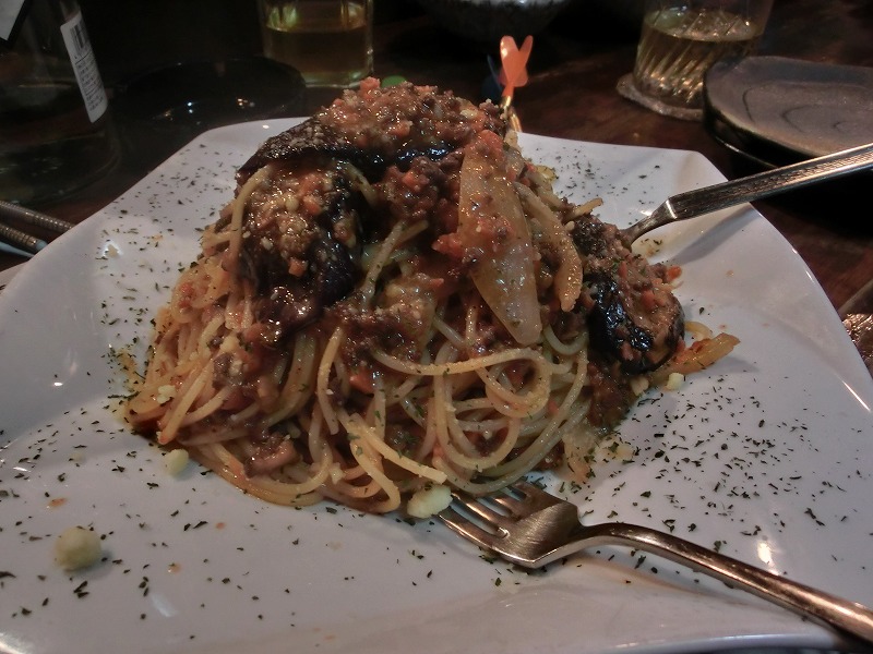 なんか汚らしく見える写真ですがなかなか美味しいナス入りボロネーゼ(大盛り)でした